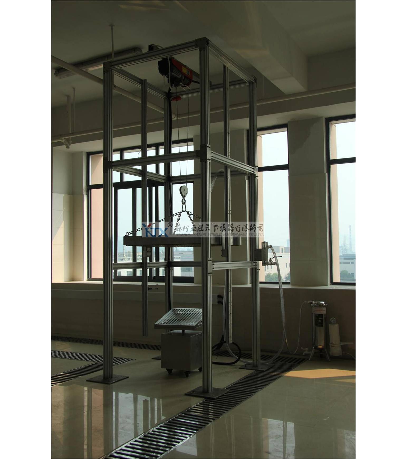 19. 降雨裝置可以自動(dòng)升降,噴嘴位于被測(cè)試物ZUI高點(diǎn)200mm處時(shí)自動(dòng)停止(通過光電開關(guān)檢測(cè))。