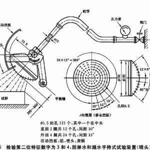 淋雨試驗噴頭依據【中國國家標準化管理委員會】發布的外殼防護等級IP代碼》GB 4208-2008/IEC 605292001 設計制造,同時亦參照GB 7000.1-2015/IEC 60598-1:2014第九部分(防塵、防固體異物和防水)的防水測試標準。