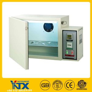本機系模擬受陽光輻射之運輸貨柜環境,以試驗各種材料或相關之產品在其中之耐變色程度,供制作材料時,調配化學原料之參考。適合行業: 皮革、鞋、瓦楞紙、橡膠、膠水、油漆等。